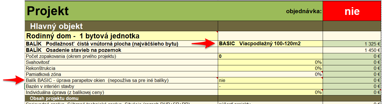 Pri projektoch BASIC sa neuvažuje so žiadnym prepracovávaním 3D modelu architektom. Požiadavky na zmenu parapetov okien sa preto zapracujú priamo do projektovej dokumentácie v 2D podľa dohodnutých špecifikácií výšok parapetov pred začatím projektovania.