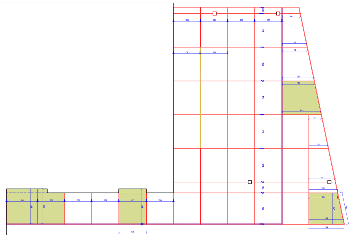 • Časť dosiek bola objednaná vo väčšom formáte, aby nevznikali malé kúsky dosiek. Tu konkrétne v šikmých častiach a pri osteniach okien. Na ukážke nižšie sú tie dosky kreslené červenou čiarou a farebne vyplnené sú z väčších formátov. Objednanie iných formátov problém nie je.
