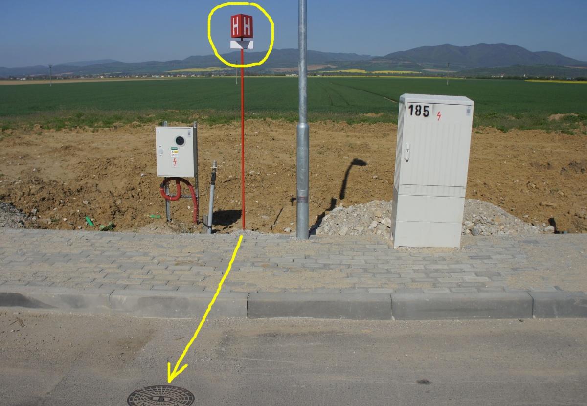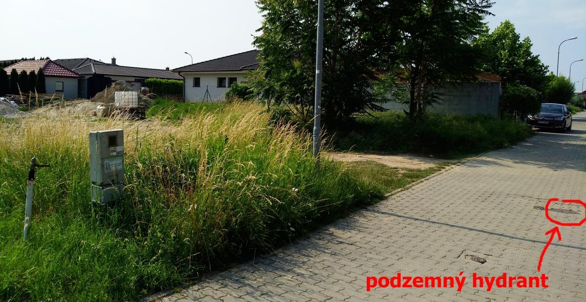 Zvyčajne sú na uliciach podzemné hydranty. Treba odfotiť širší pohľad, aby sa dalo odhadnúť, kde ten hydrant je voči riešenému pozemku. Prípadne si ho poznačiť – napr.: 5 parciel doprava cca. v strede 6.tej parcely, a potom to poznačiť podľa katatrálnej mapy. Štandardne hydranty geodet zakreslí, toto je poistka, ak by nenakreslil.