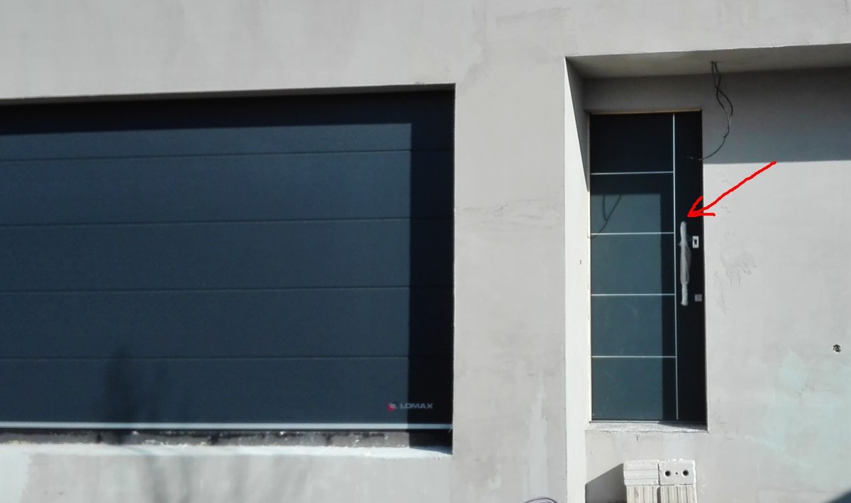 Vchodové dvere do domu sú orientované na západ a teplotu povrchu dverí investor nameral v lete 65°C. Podľa skúseností dodávateľa okien to môže byť až 80°C.  Madlo je nerezové a vyčnieva, takže má nižšiu teplotu.