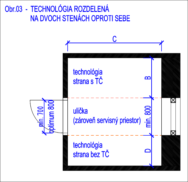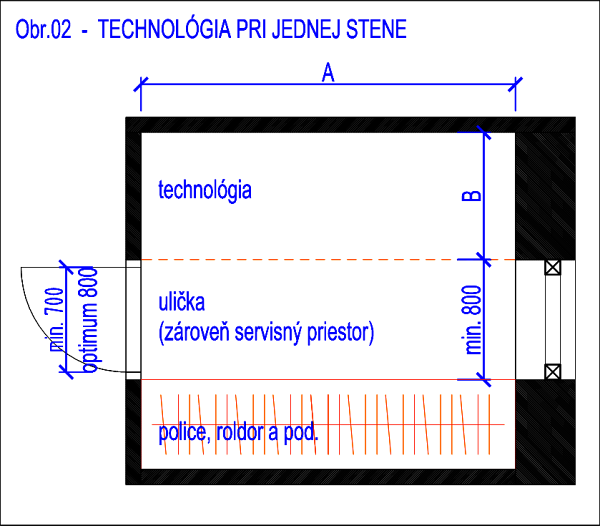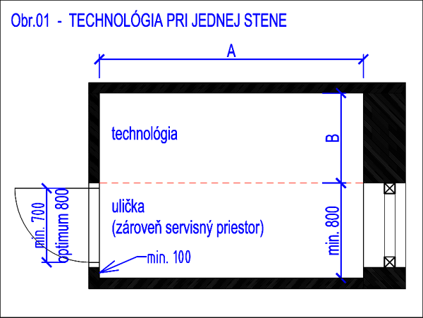 Technická miestnosť – minimálne rozmery ▼