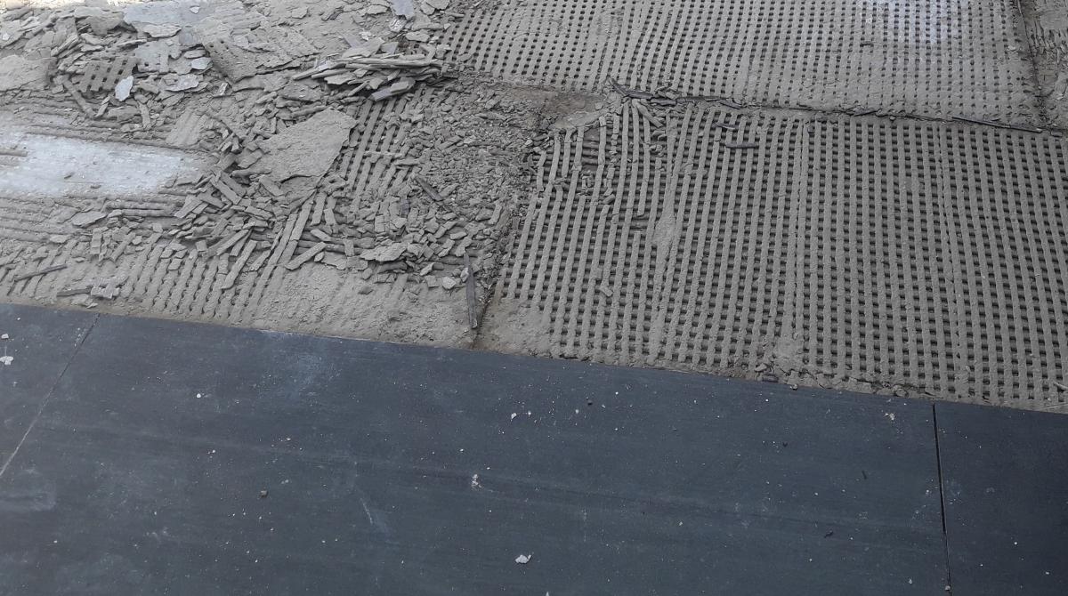 Na stavbách ale bežne ľudia nalepia dlažbu podobným spôsobom ako v interiéri a potom to skončí za cca. 3-5 rokov takto: