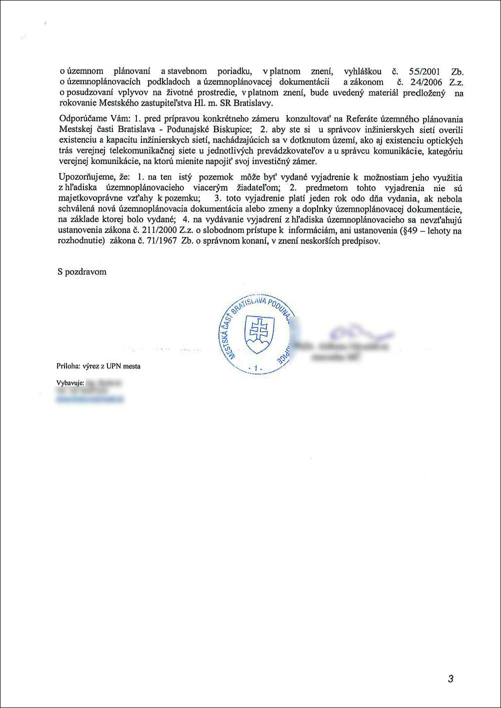 Ukážka štvorstánkovej územnoplánovacej informácie: